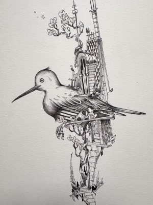 Illustration originale en collaboration avec Maxime Ivanez, encre noire – vendue avec le cadre. Format fini: 27X36cm