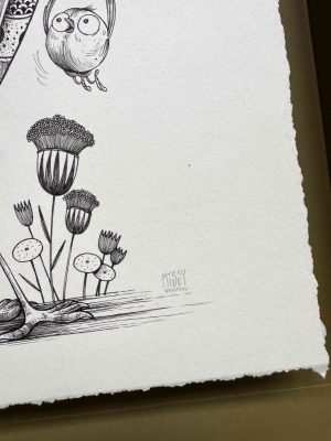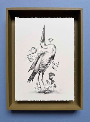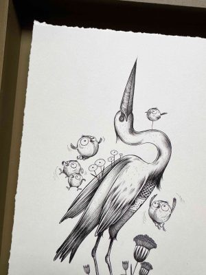 Illustration originale, encre noire – vendue avec le cadre. Format fini: 27X36cm