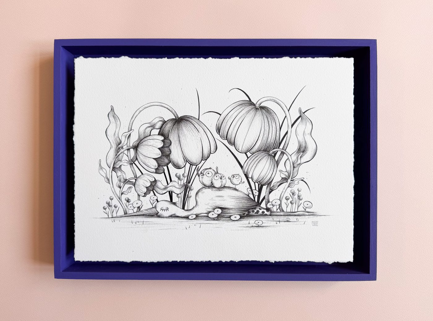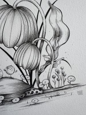 Illustration originale, encre noire – vendue avec le cadre. Format fini: 27X36cm